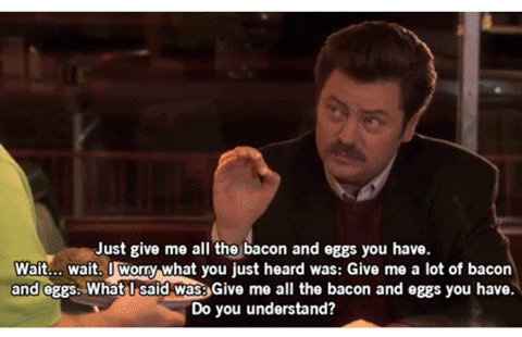 I feel like my relationship with them is the same relationship Ron Swanson has with bacon and eggs...