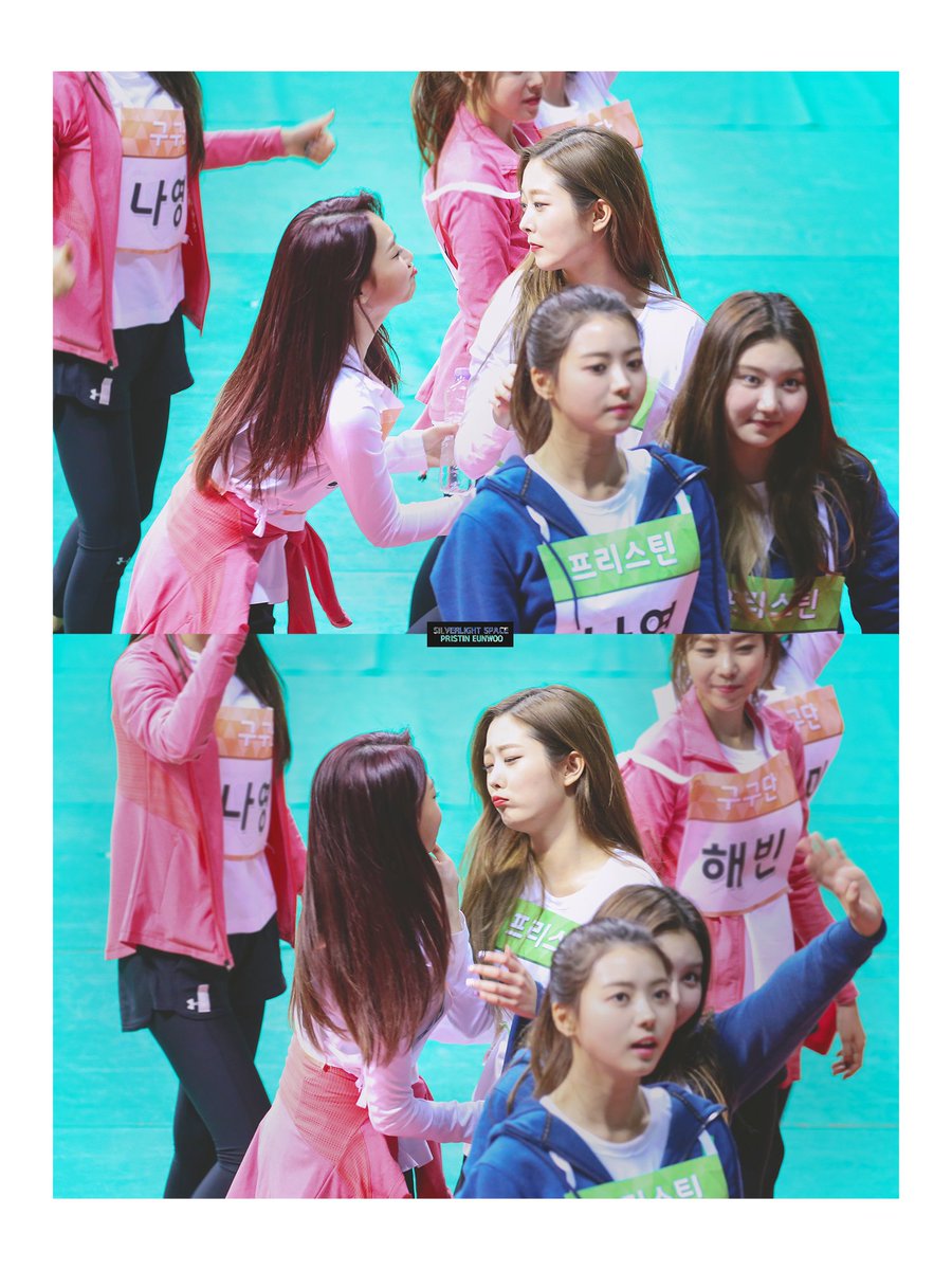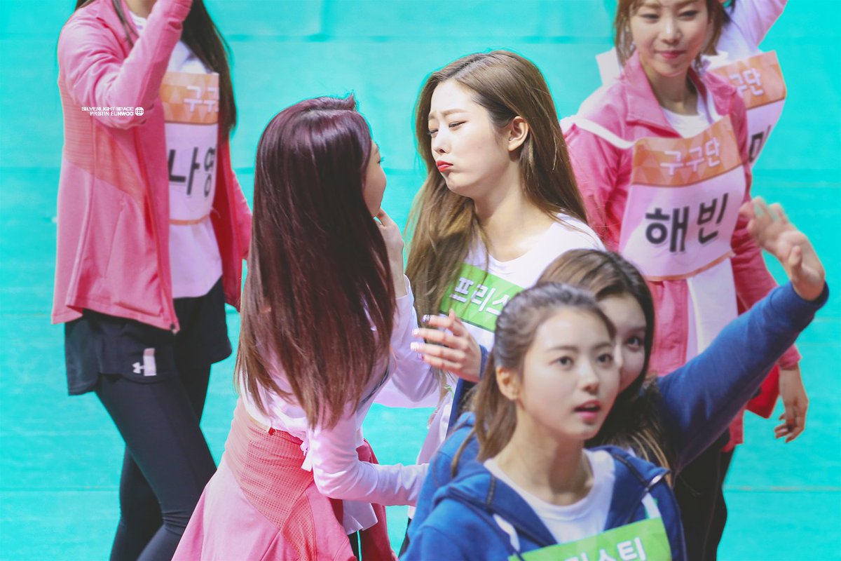 (뽀뽀 두번해서 미나가 인상 두번이나 썼답니다))#프리스틴 #은우 #구구단 #미나 pic.twitter.com/mUBoqLehBr