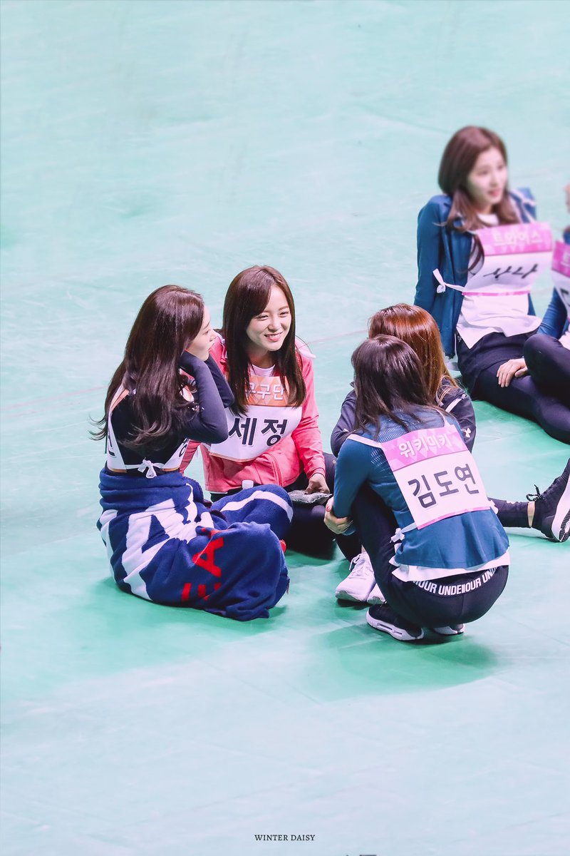 Look at Doyeon.. she stand up right away when she saw Sejeong is coming pic.twitter.com/M4vF8RL7KB