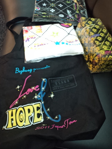The encore was Gara Gara Go and Heaven and all the members ran around the stage while singing because it was the last concert in Osaka. Taeyang was near us at one point and he took off his sweater and threw it to the first row. A girl caught it and her & her mom were so excited. They immediately put it in their bags. After the concert, 2 fans went up to them and asked if they could touch the sweater..and even took pictures with it! I wonder who caught the towel that GD threw out…!