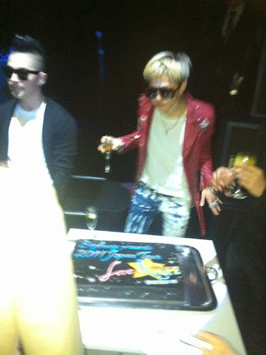 Translation: BIGBANG JAPAN LOVE&HOPE tokyo at the afterparty. Japan’s famous comedian Tano Shingo gave V.I a woman’s tee. JAPAN THANK U