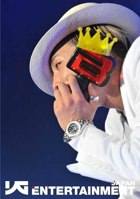 When they jumped from under the stage at the beginning of GGG, they were all wearing masks of Doala, Nagoya’s baseball team mascot. So cute! The others took it off when they started singing and dancing, but GD kept it in his neck and again in his face when he wasn’t singing XD